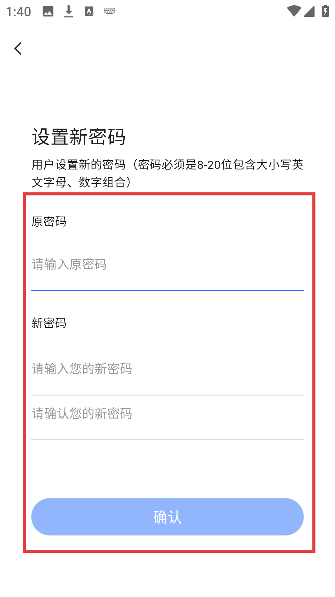 4、在设置新密码页面,输入原密码和新密码并确认,点击【确认】,即可完成密码修改操作哦。