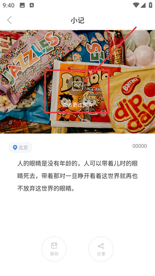 3、在小记编辑页点击图片区域的【点击更改图片】按钮,就能打开图片选择的弹窗啦。