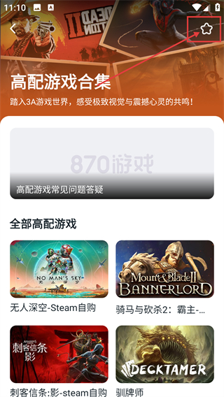 2、进入高配游戏合集页后,点击右上角的星星按钮,就能把这个游戏合集收藏起来,方便后续查看哦。