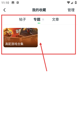 4、在我的收藏页切换到【专题】分类,就能看到收藏的高配游戏合集,随时能点击查看详情哦。