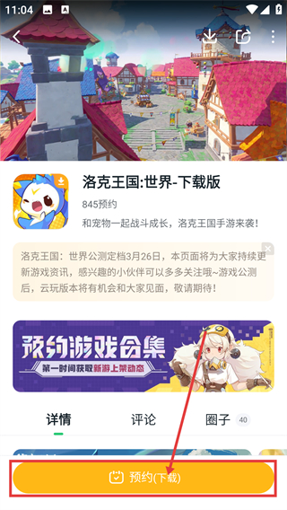 3、在游戏详情页,确认信息后点击底部的【预约(下载)】按钮,就能完成该游戏的预约操作啦。