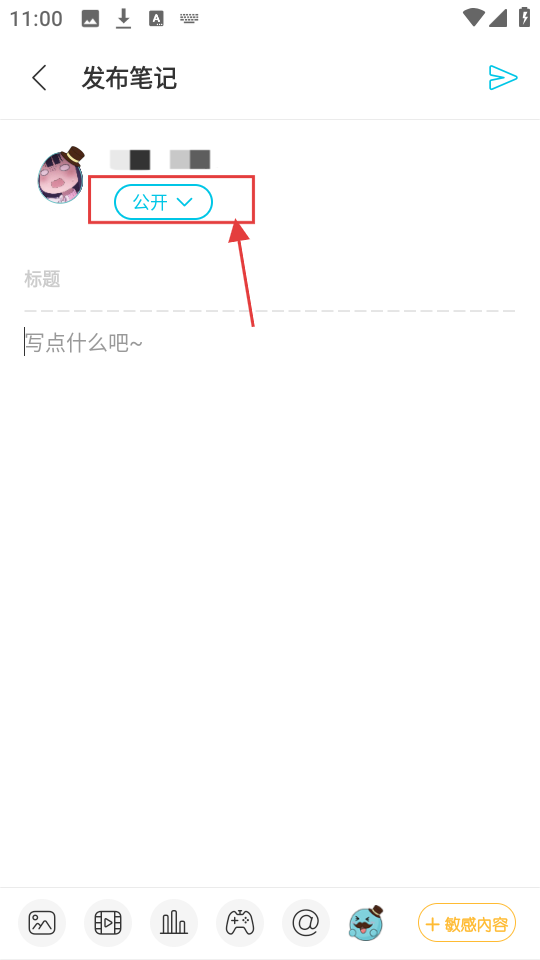 2、发布笔记页面点【公开】按钮,能选择笔记的隐私设置,很实用呢。