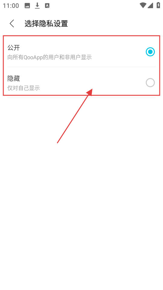 3、选择隐私设置时,可根据需求选【公开】或【隐藏】,让笔记展示更符合心意呀。