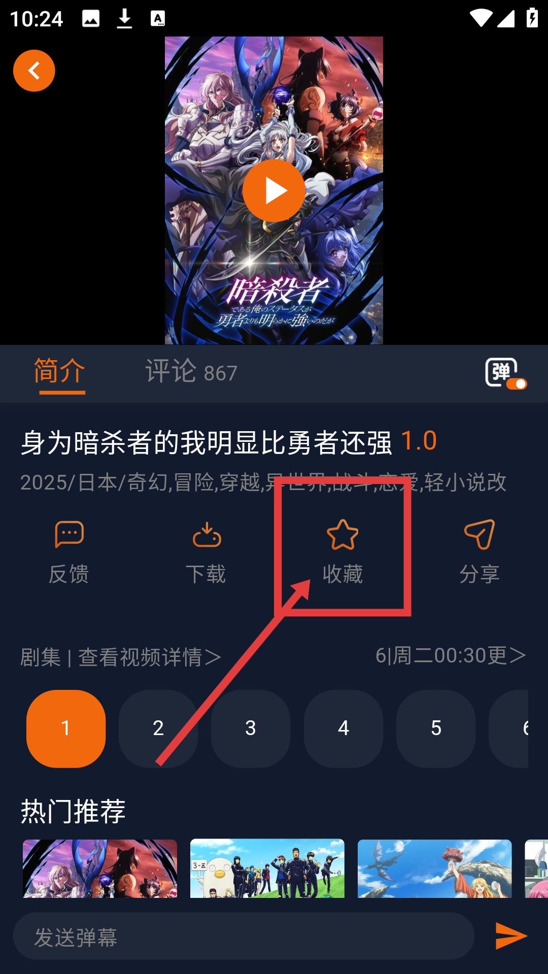 2、进入动漫详情页后,点击【收藏】,可将该动漫加入收藏,方便后续查看哦。