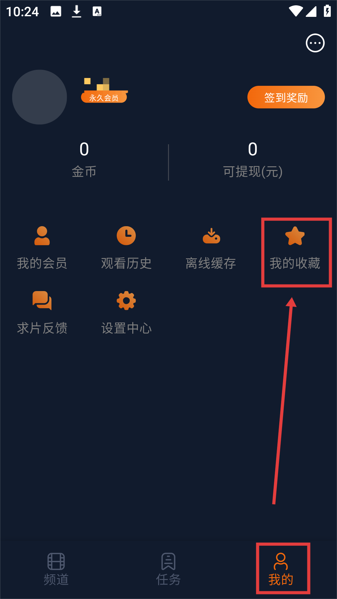 3、点击【我的】,进入个人页面后,点击【我的收藏】,可查看已收藏的动漫啦。