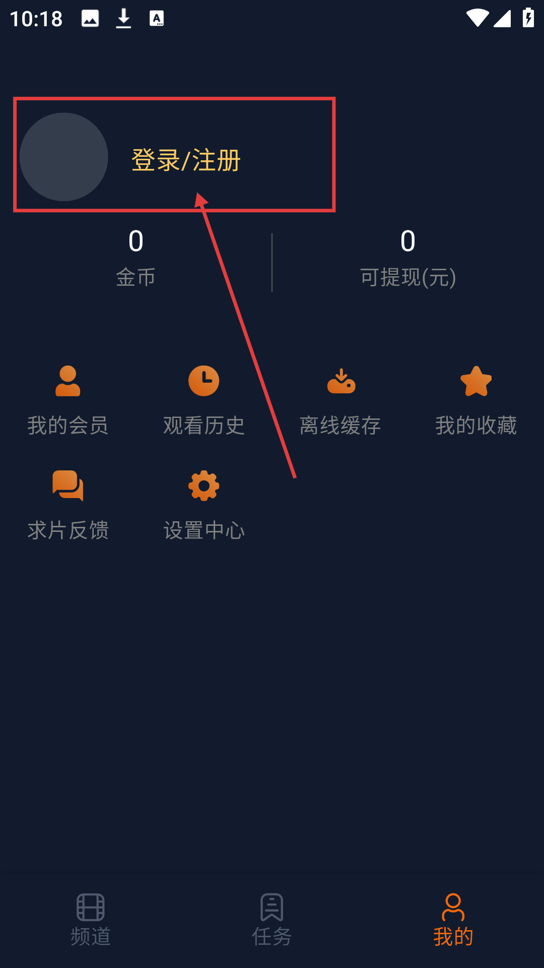 1、在频道页面点击右下角【我的】按钮,进入个人页面可进行登录等操作哦。