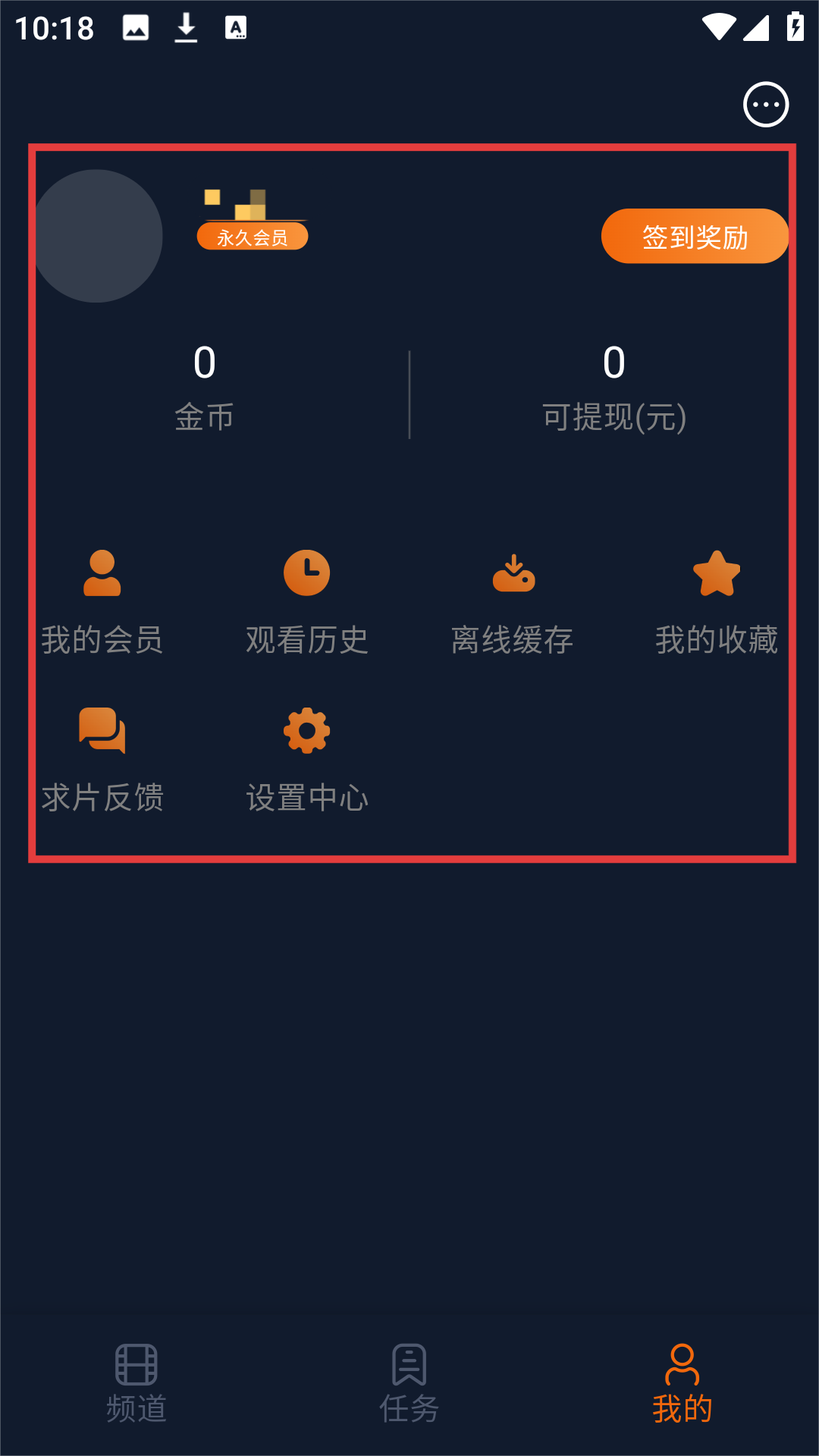 4、登录成功后,个人页面会显示会员信息、金币等内容,还能使用观看历史、离线缓存等功能哦。