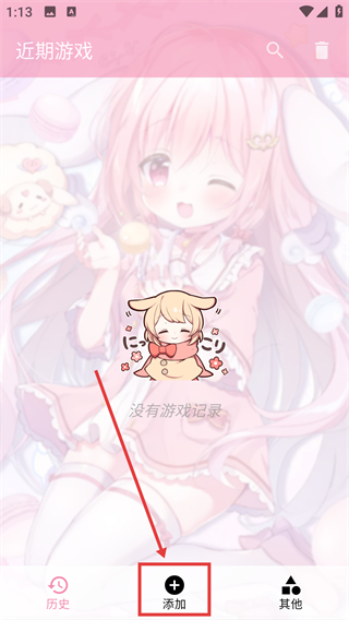 1、在近期游戏页点击底部【添加】按钮,就能进入添加游戏页面,准备把想玩的游戏添加进来啦。