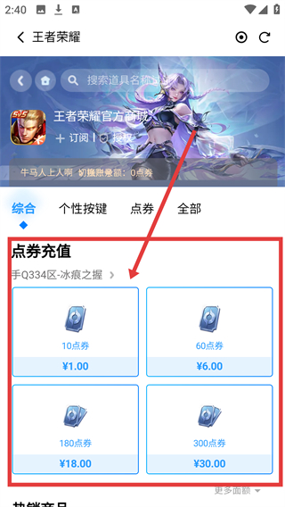 2、在商城界面选要充值的游戏,像【王者荣耀】,点击进入充值界面啦。