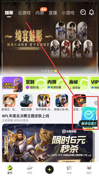 1、在腾讯先锋首页,点击【新手任务!!】,可进入新手任务页面,准备完成任务获取奖励啦。