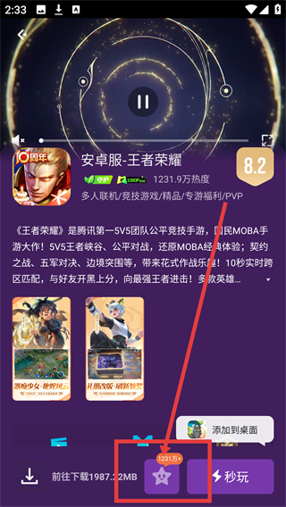3、以关注游戏为例,进入游戏页面后,点击星星图标,即可关注该游戏,完成关注任务啦。