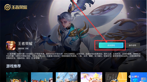 2、进入【王者荣耀】详情页后,点右侧的【启动游戏】按钮,就能直接启动这款游戏开始体验哦。