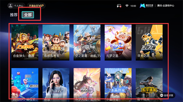 3、点顶部的【全部】选项,能看到所有游戏的列表,各类游戏都在这儿,方便找到想玩的呀。