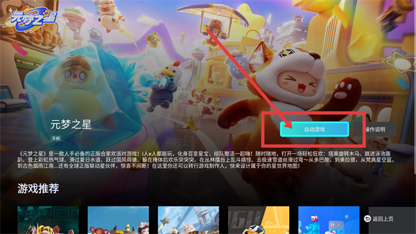 4、进入【元梦之星】详情页后,点【启动游戏】按钮,就能快速启动这款合家欢派对游戏啦。