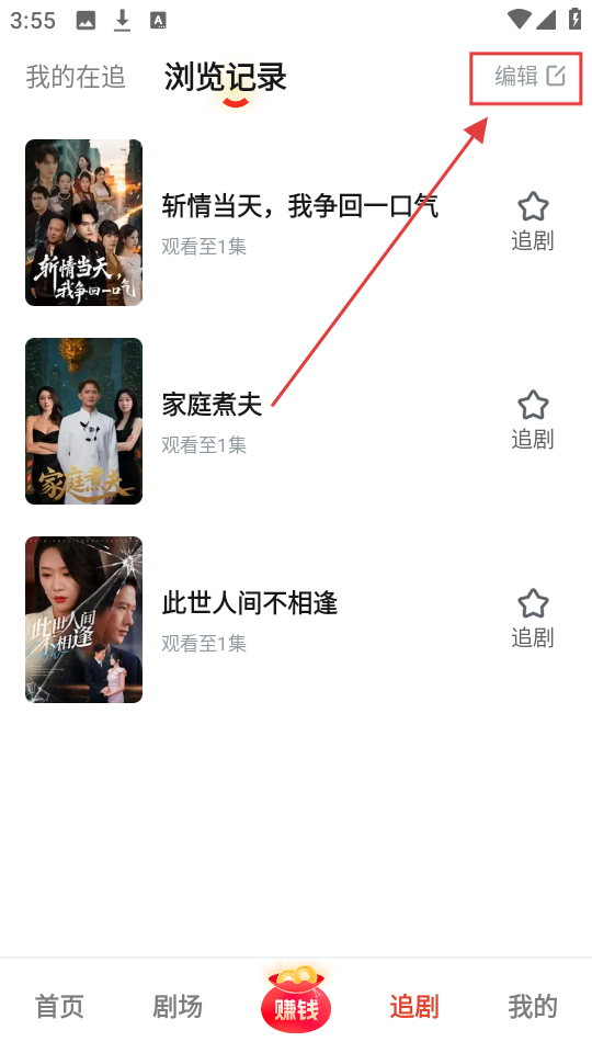 1、我们想管理浏览记录时,就点击界面右上角的【编辑】按钮,这样就能开启后续的操作啦。