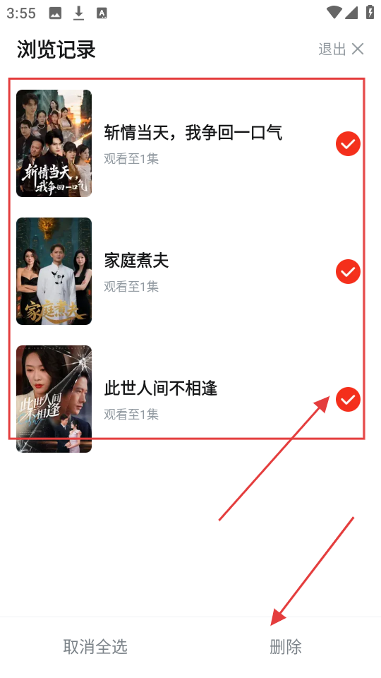 2、进入编辑状态后,我们可以选择想要删除的浏览记录,像图里那样把要删的内容都选中,为下一步删除做准备。