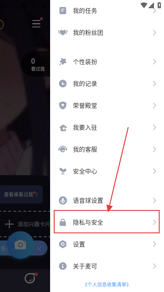 2、菜单里点【隐私与安全】,进入后可管理隐私相关设置,很实用哦。