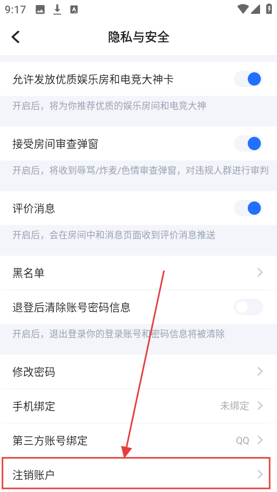 3、隐私与安全页面点【注销账户】,进入账号注销流程,想注销账号就从这里开始啦。