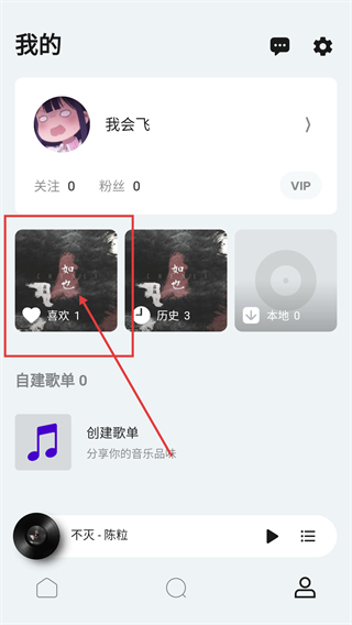 3、切换到【我的】页面,找到【喜欢】板块并点击,进入喜欢列表界面,可查看已收藏的歌曲内容呀。