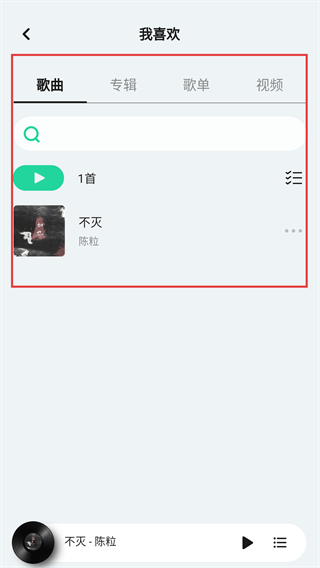 4、在【我喜欢】页面,可看到已收藏的歌曲列表,点击播放按钮就能直接播放这些喜欢的音乐啦。