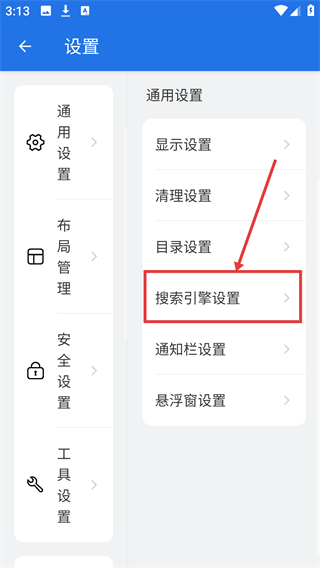 2、进入设置页面后,在通用设置分类下找到【搜索引擎设置】,点击可进入对应的配置界面哦。