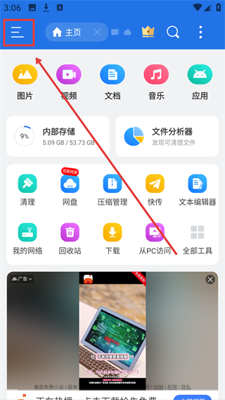 1、在主页,点左上角的菜单按钮,可展开侧边栏,查看更多功能选项来管理文件哦。