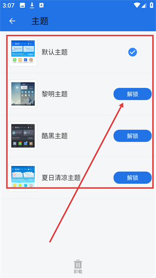 3、进入主题页后,能看到多个主题选项,点对应主题旁的【解锁】,可开启解锁流程呢。