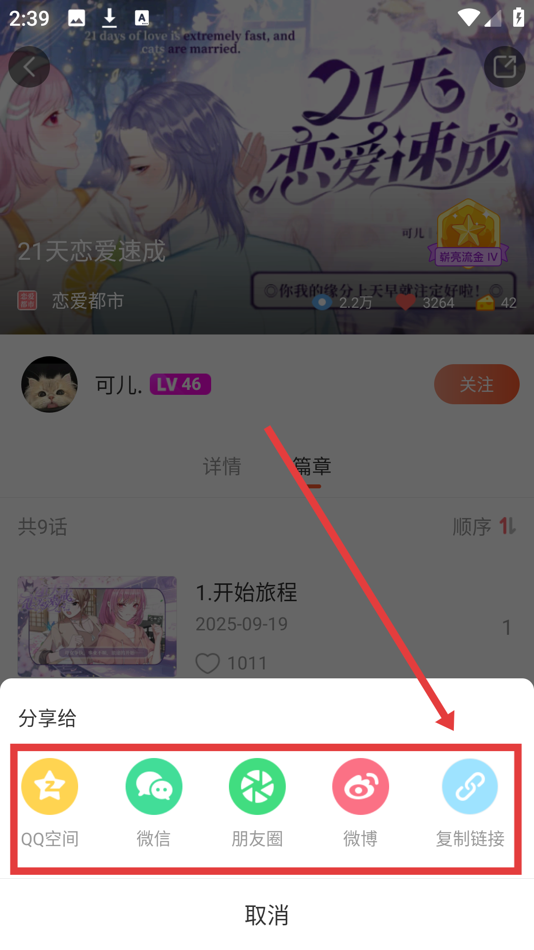 3、在分享选项中,选择【复制链接】,可复制该作品的链接,方便分享给他人啦。