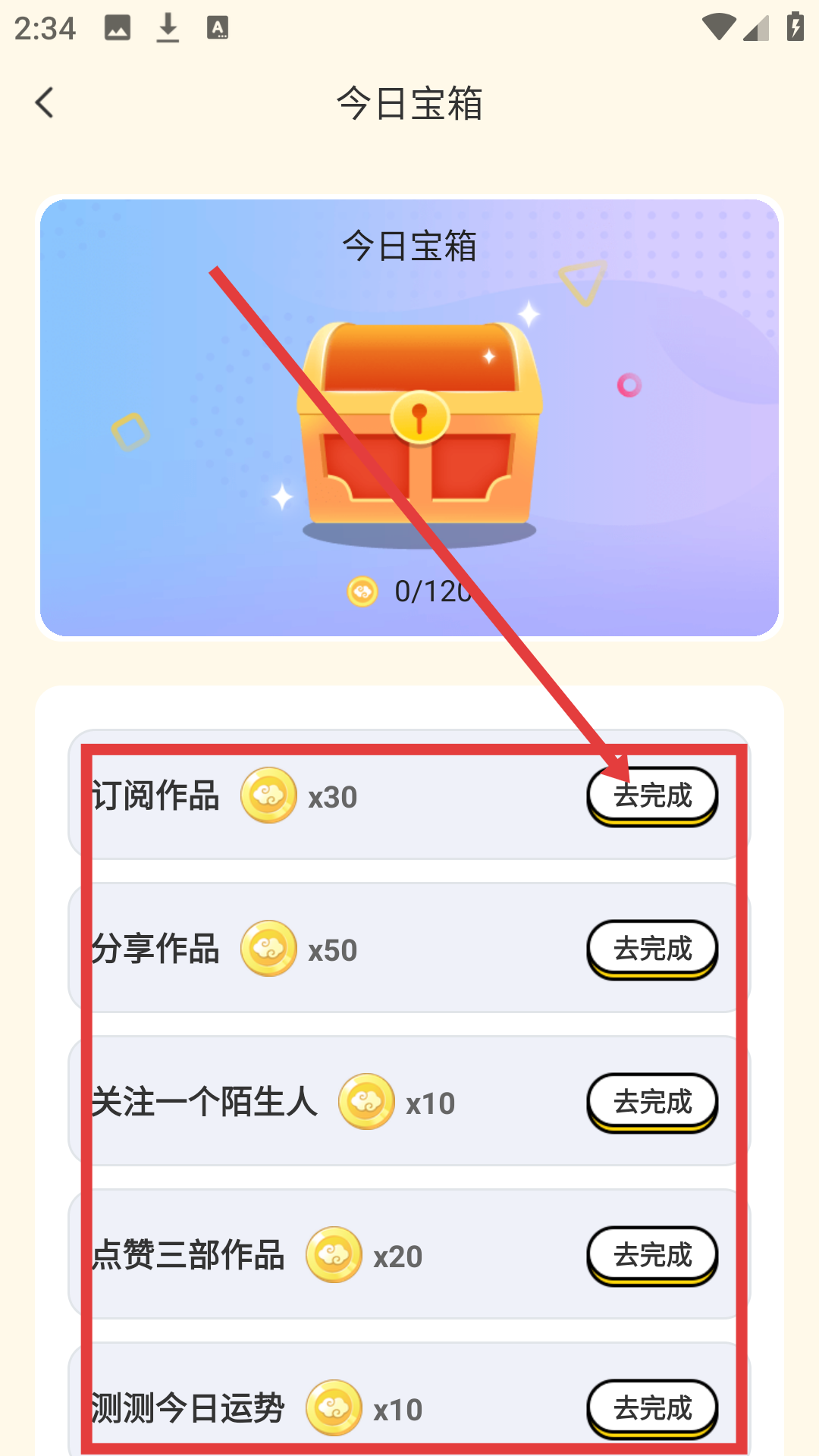 2、在赚金币页面可看到“订阅作品”等任务,点击“去完成”可做任务赚金币啦。