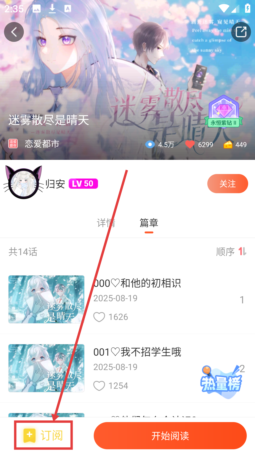 3、在作品页面点击【订阅】按钮,完成订阅作品任务哦。