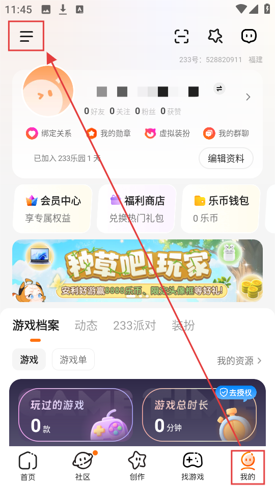 1、我们进入【我的】页面后,点击左上角的三条横线图标,就能展开侧边栏,看到更多功能选项啦。