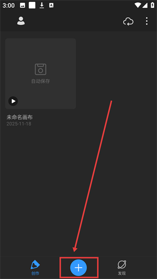 1、在创作页面点击底部蓝色【+】按钮,进入新建画布页面,可选择不同尺寸的画布开始创作哦。