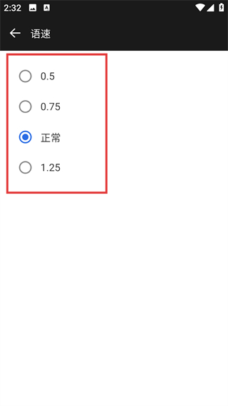 3、在语速界面可选择0.5、0.75、正常、1.25等档位,按需调整翻译语音的播放速度啦。