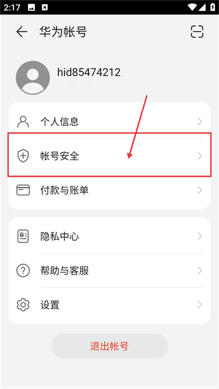 2、进入华为帐号页后,点【帐号安全】选项,就能进入安全设置界面,处理密码等安全相关内容哦。