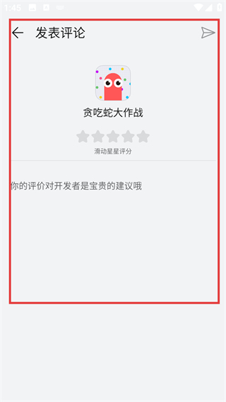 4、进入发表评论页后,可滑动星星评分,再输入评价内容,就能给这款游戏提交反馈啦。