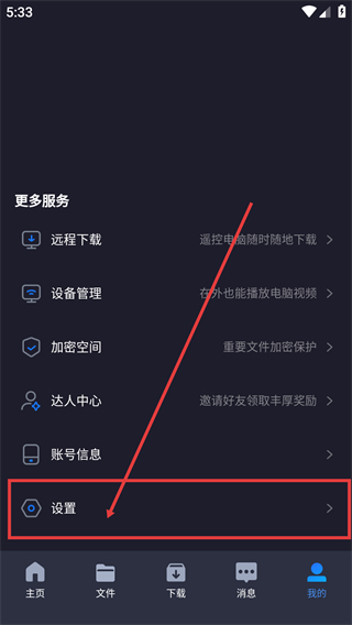 2、在【我的】页面中,找到并点击【设置】,进入设置界面。