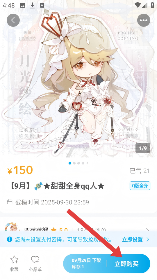 4、在作品详情页,确认没问题后,点击【立即购买】按钮,按照提示完成后续支付流程就好啦。