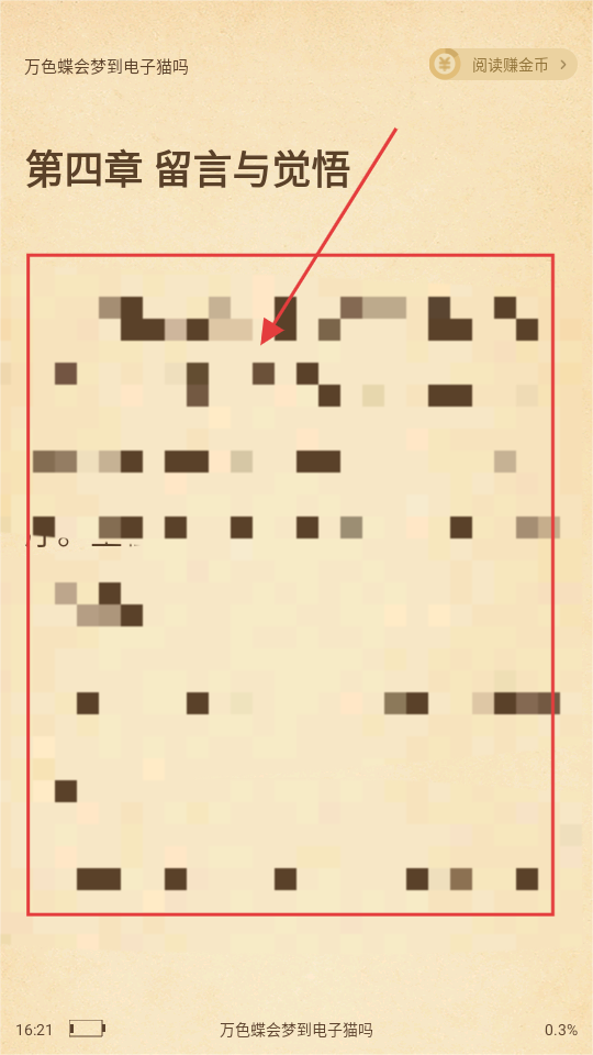 4、选好章节后,就能进入阅读界面,沉浸在《万色蝶会梦到电子猫吗》的故事里啦。