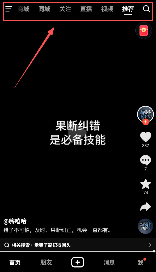 4、搜索功能帮你发现精彩内容,在顶部搜索框输入关键词就能找到相关视频和用户,热门话题和实时榜单让你紧跟潮流。