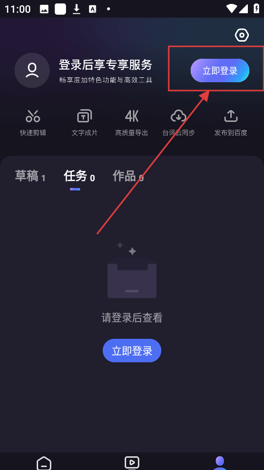 1、在创作页面点击右下角【我的】按钮,进入个人页面可进行登录等操作哦。