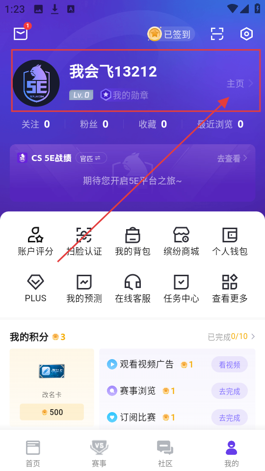 1、我们进入“我的”页面,若想进入个人主页,点击【主页】,就能进入个人主页页面啦。