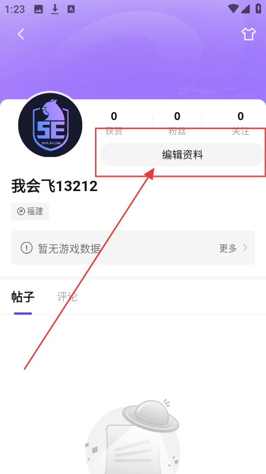 2、在个人主页页面,若想编辑资料,点击【编辑资料】,就能进入账户信息页面哦。