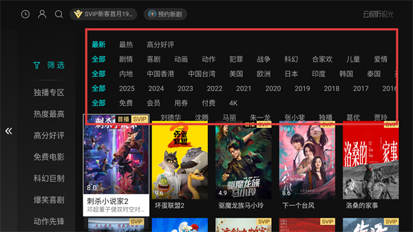 2、提供更多选项:应用程序提供多种观看选项,包括按类型以及时代等进行过滤,还可以通过多屏交互实现便捷操作。