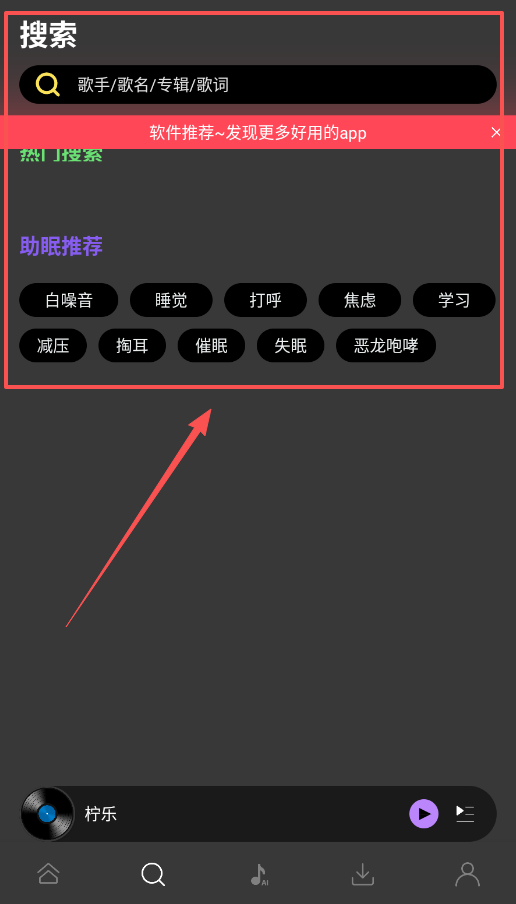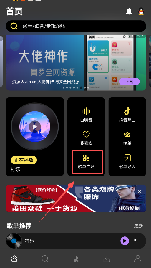 4、最后别忘了探索其他功能,在搜索页能找到助眠白噪音或热门抖音曲库,通过歌单广场发现更多灵感,打造个人音乐库真的很方便。
