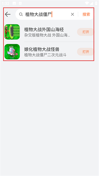 3、输入【植物大战僵尸】后,会出现相关游戏列表,像【植物大战外国山海经】这类衍生作都能看到啦。