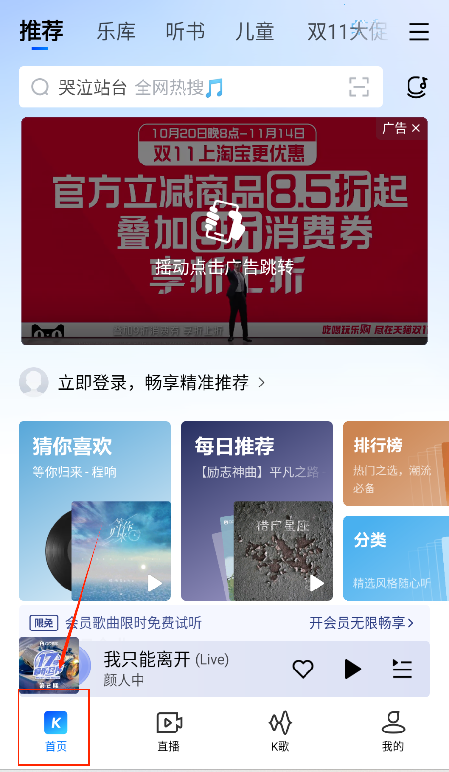 2、听歌时多关注推荐算法,首页的“猜你喜欢”和“每日推荐”会根据你的听歌习惯推送相似风格歌曲。