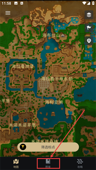 5、如果你不清楚塞尔达各种资源的话,可以点击图鉴,进行搜索查询,非常方便