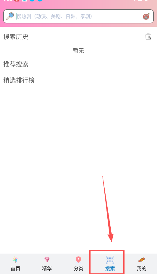 1、第一次打开软件,进入后,如果没有具体目标,可以看看“推荐搜索”和“精选排行榜”里的热门内容。