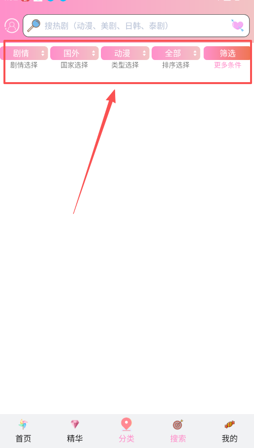 4、搜索页面顶部有几个快捷频道按钮,如“动漫”、“美剧”。直接点击它们,就能快速进入相应专区浏览,比手动输入筛选要快得多。