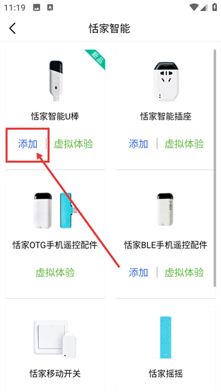 3、在智能产品列表里点【恬家智能U棒】对应的【添加】按钮,就能进入该设备的配置页面啦。
